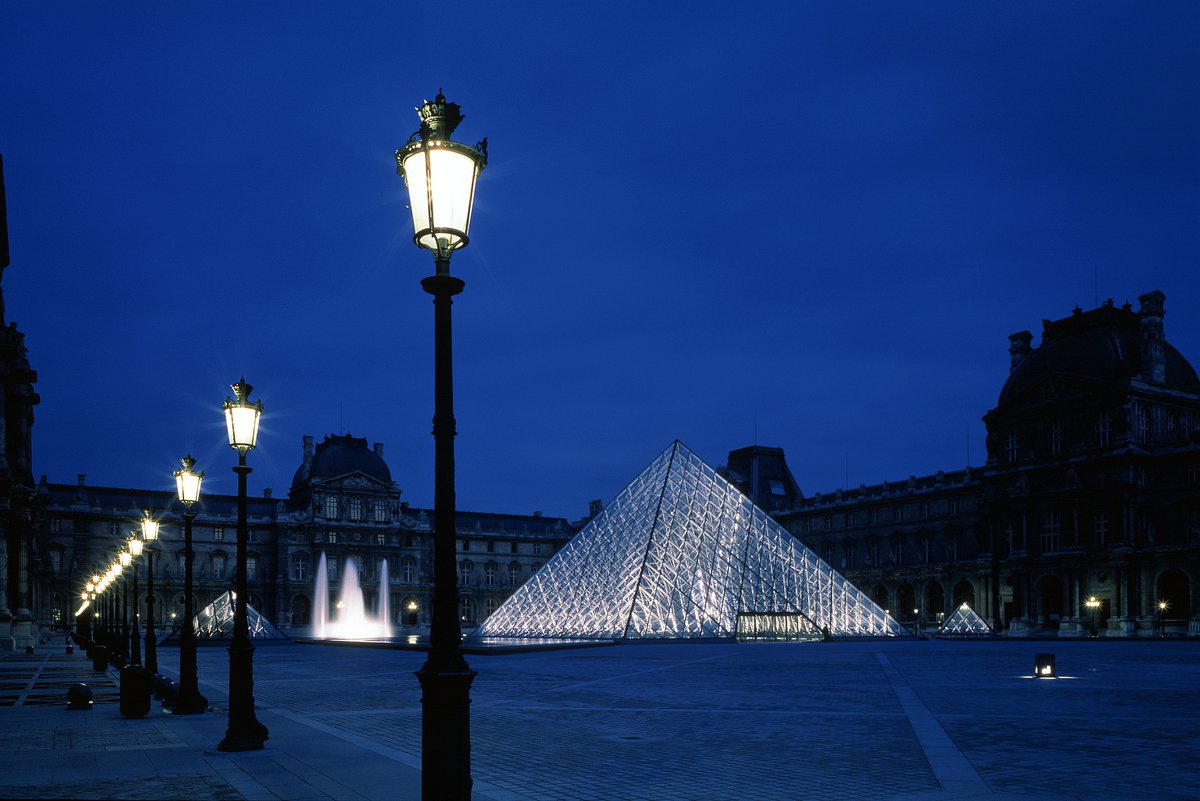 The project reorganized the Louvre in Paris around a focal courtyard, its glass pyramid forming a new main entrance and becoming an emblem of the city.